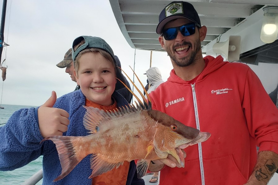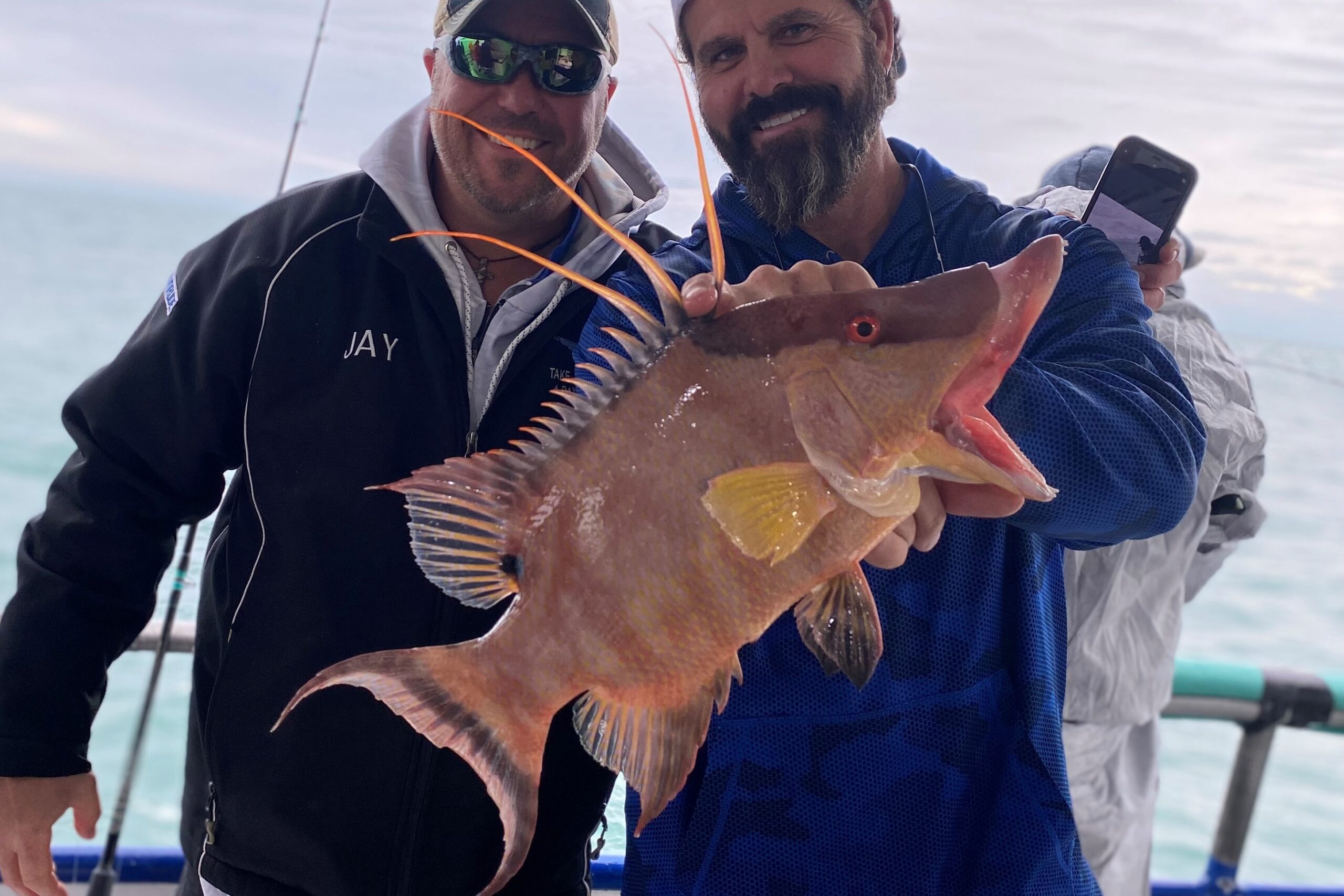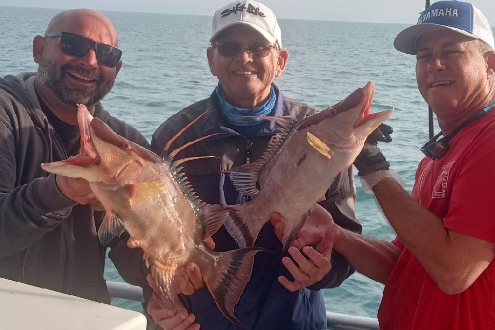 The hogfish bite has been going well for us around the near shore waters fishing anywhere from around 40ft up to around 90ft. We are catching them still most often using the live shrimp and lighter 30lb leaders and minimal weights with around 3-4ot hooks. However, some are getting them on even heavier tackle especially with the more stirred up waters this makes them much less leader shy and picky. Look for them on those smaller ledges, areas of hard bottom, and even that shell bottom adjacent to the ledges, rock piles and hard bottom areas.