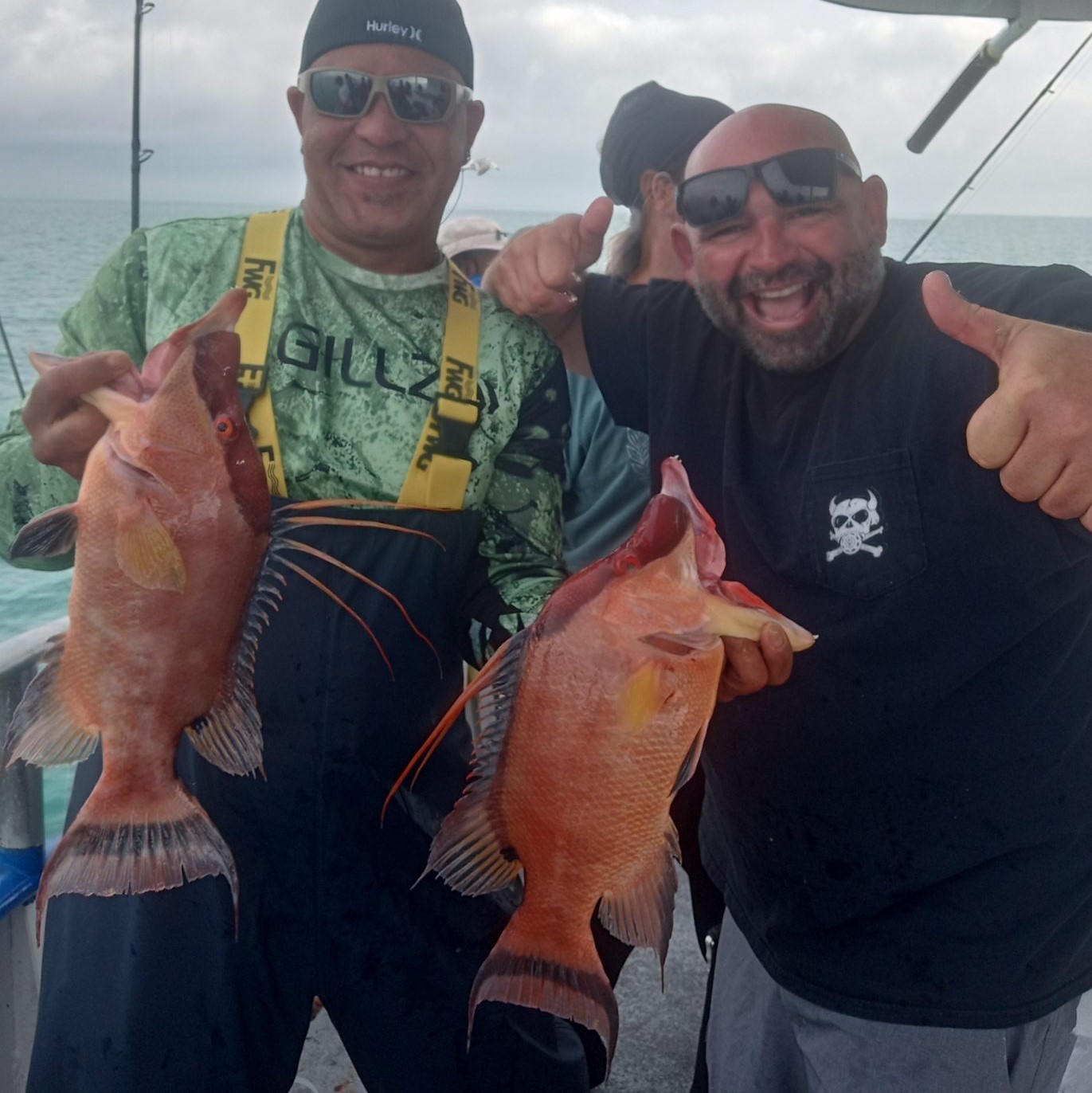 Mangrove snapper have been consistent near shore lately out deeper like the lane snapper, however, like lane snapper we are seeing them here and there shallower but if you can get out there to more like 80-100ft we are seeing much more steady and bigger fish. Some mangroves near shore closer to 100ft are as big as 6-7lbs which is extremely large for our near shore waters. Not a ton of them, but we are seeing a much larger overall size right now. Plus, the more stirred up conditions are making them more aggressive and much less leader shy and picky.