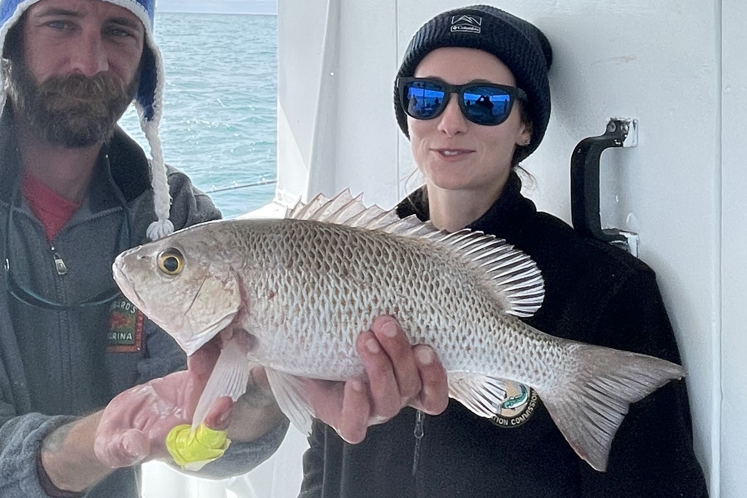 The snook action around the area has been a little more sporadic, but mostly concentrated back in the bay where they can find warmer; more consistent water temps. Like the redfish, these guys are looking to find anywhere warmer to try and get some reprieve from cooling water temps. They are also moving slowly and looking for ways to eat without expending much if any energy. Live shrimp, cut dead bait, or those super slow moving soft plastics with long pauses while working the lure across those pockets along shallow sun-drenched shorelines. Dock lines of residential canals are also hotspots and around dock lights at night. Keep in mind those under water lights, especially the older models do radiate some heat and that’s enough to excite and congregate predatory fish.