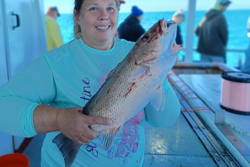 We were unable to get offshore into the deeper waters this past week with weather conditions. However, we know those fat red grouper are thick out there around that 100-120ft mark. That is where we will be focused in the coming two months with the deep-water grouper spawning closure. For February and March, we are unable to keep any grouper species if you’re beyond the 20 fathom closure line which is 120ft of water. This means often we will fish beyond 120ft of water to start trips like our 39 hours or 44 hours to get the mangrove snapper at night then bounce in shallower for the sunrise and daytime fishing inside the ‘fence’ where we are able to keep those red grouper fishing 100-120ft of water for the remainder of the trip.