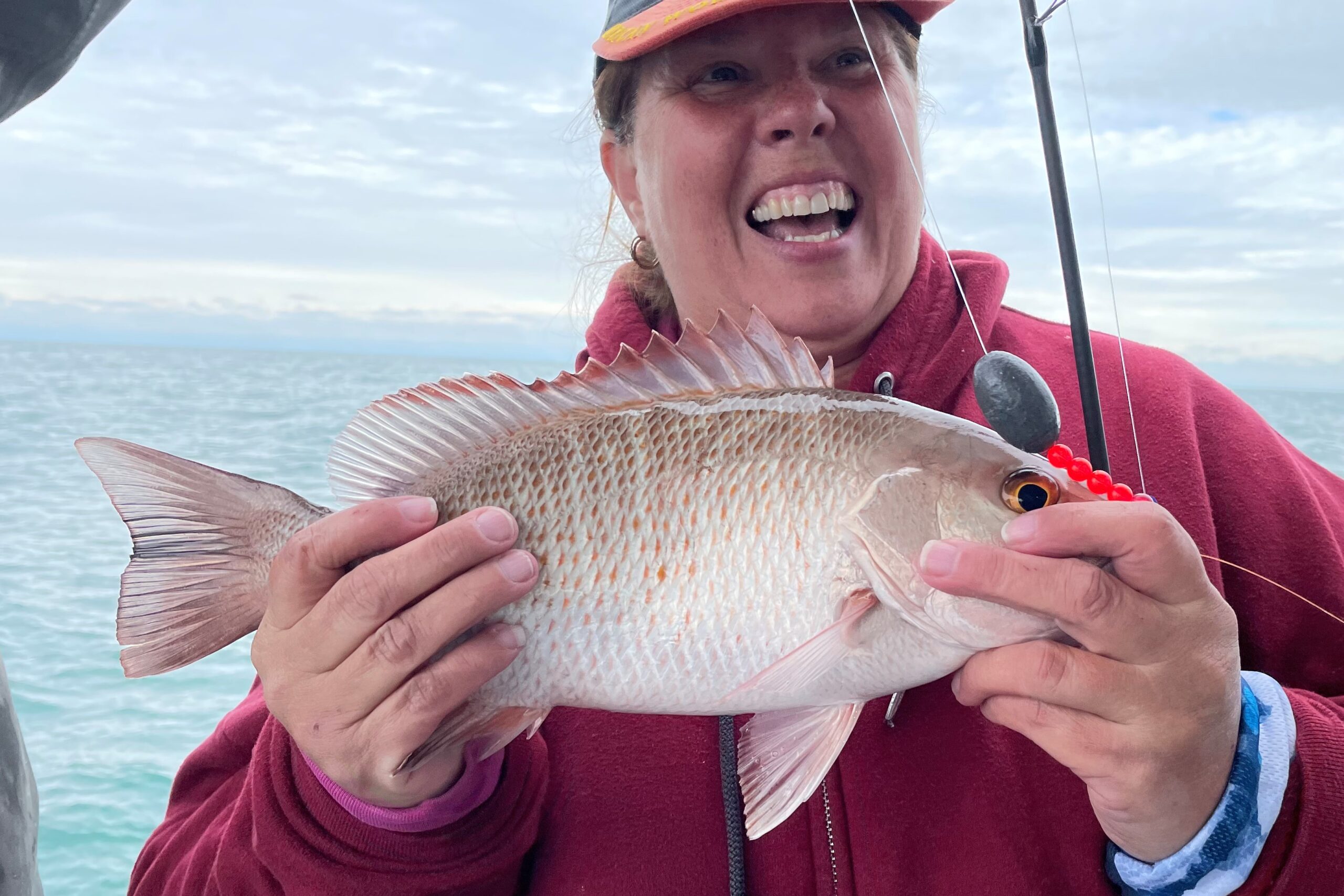 Lane snapper have been really thick lately around 70-100ft of water near shore, but we are seeing them shallower too. However, the deeper you get the more concentrated and prolific they get. We are catching them most often on squid, shrimp, and small pieces of threadfin on lighter tackle.