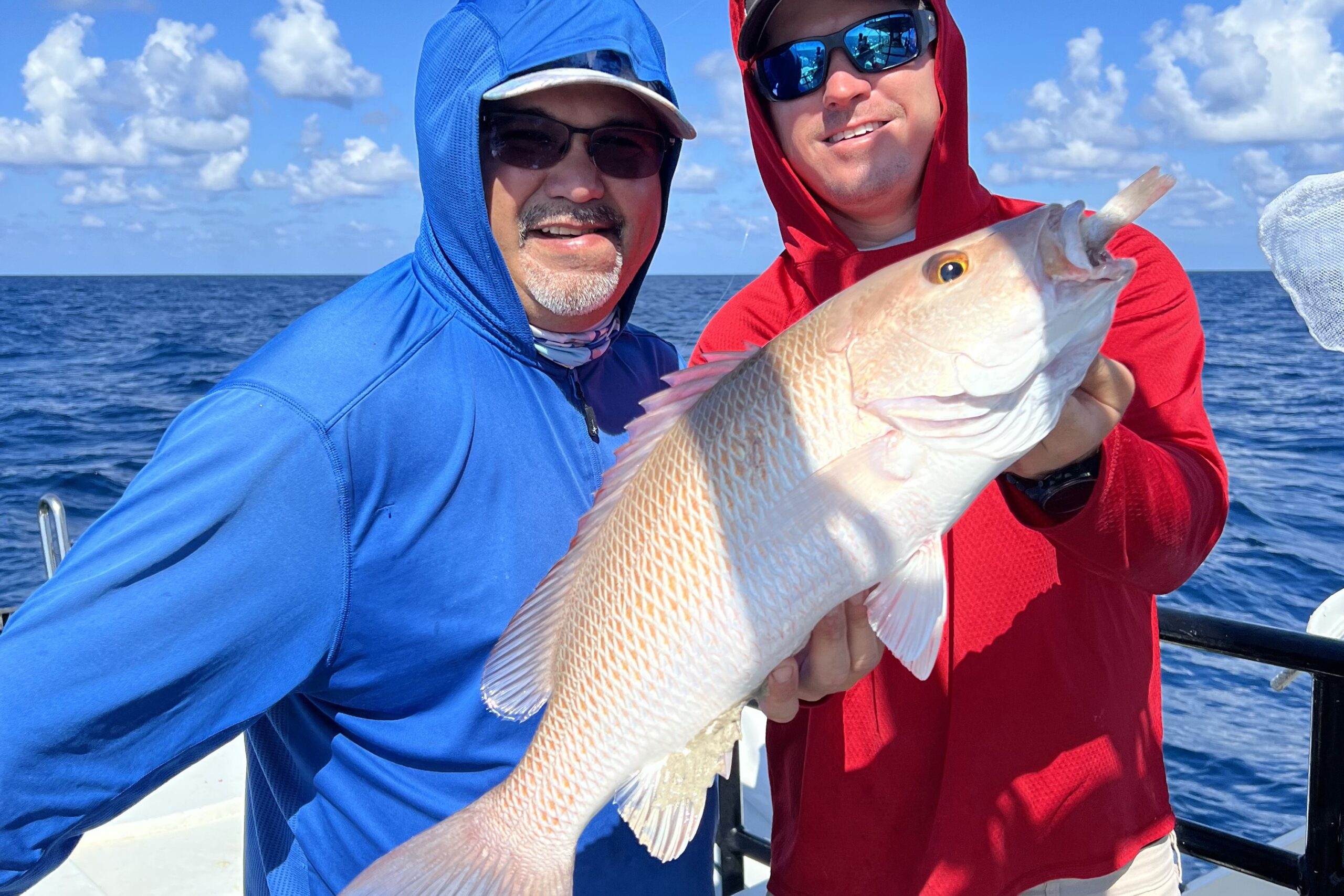 Mangrove snapper action is going super well offshore. Mostly because we’ve had a lot of overcast days which have helped the mangrove snapper fishing to be hot even during the day time. However, we are currently more clear and cloudless which has made it a little bit more tricky during the day. We are coming up on that full moon and we do have more cloudy days in the forecast next week so we expect the mangrove snapper fishing offshore to resume being very good. Mangrove snapper offshore we are typically utilizing a small chunk of cut threadfin and the double Snell rig around 5 to 6ot double Snell hooks and around 40 to 50 pound floor carbon leader.