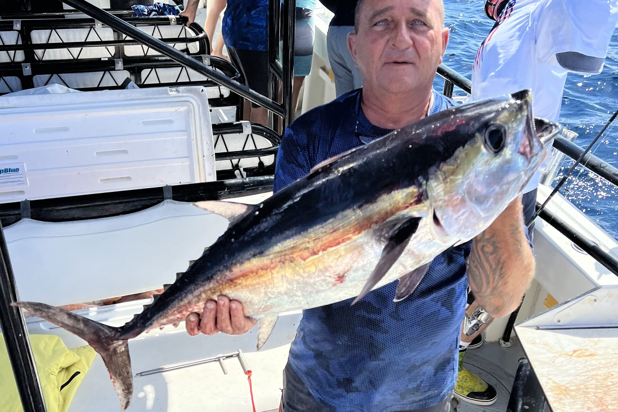 Mackerel action is going super well in the near shore waters especially along artificial reefs wrecks and any area that will hold plentiful bait. We’re starting to see big bait pods along the beaches throughout the near shore areas primarily anywhere from about 10 to 15 foot up to around 60 foot of water. When you can find the bait pushed up to the surface showering on the surface being chased by birds typically it’s because there’s mackerel underneath those bait fish balling them up and feeding actively. While you’re cruising near shore or heading offshore through near shore waters keep your eyes peeled for these bait pods and don’t be afraid to stop and throw some gotcha plugs or put out planers and spoons and troll through those areas for plenty of rod bend and action. It doesn’t take a very large boat or any special set up to be able to go out there and catch plenty of mackerel quickly along our near shore waters at this time. Even a small boat like a skiff can go out any one of our local passes right now with just two rods a number one planar about 15 feet of 40 pound monofilament behind the planer to a drone spoon about four to six inches in length and have plenty of fun catching almost endless mackerel. We are seeing a lot of these mackerel being caught on our five hour half days trolling on the way out and even while bottom fishing.