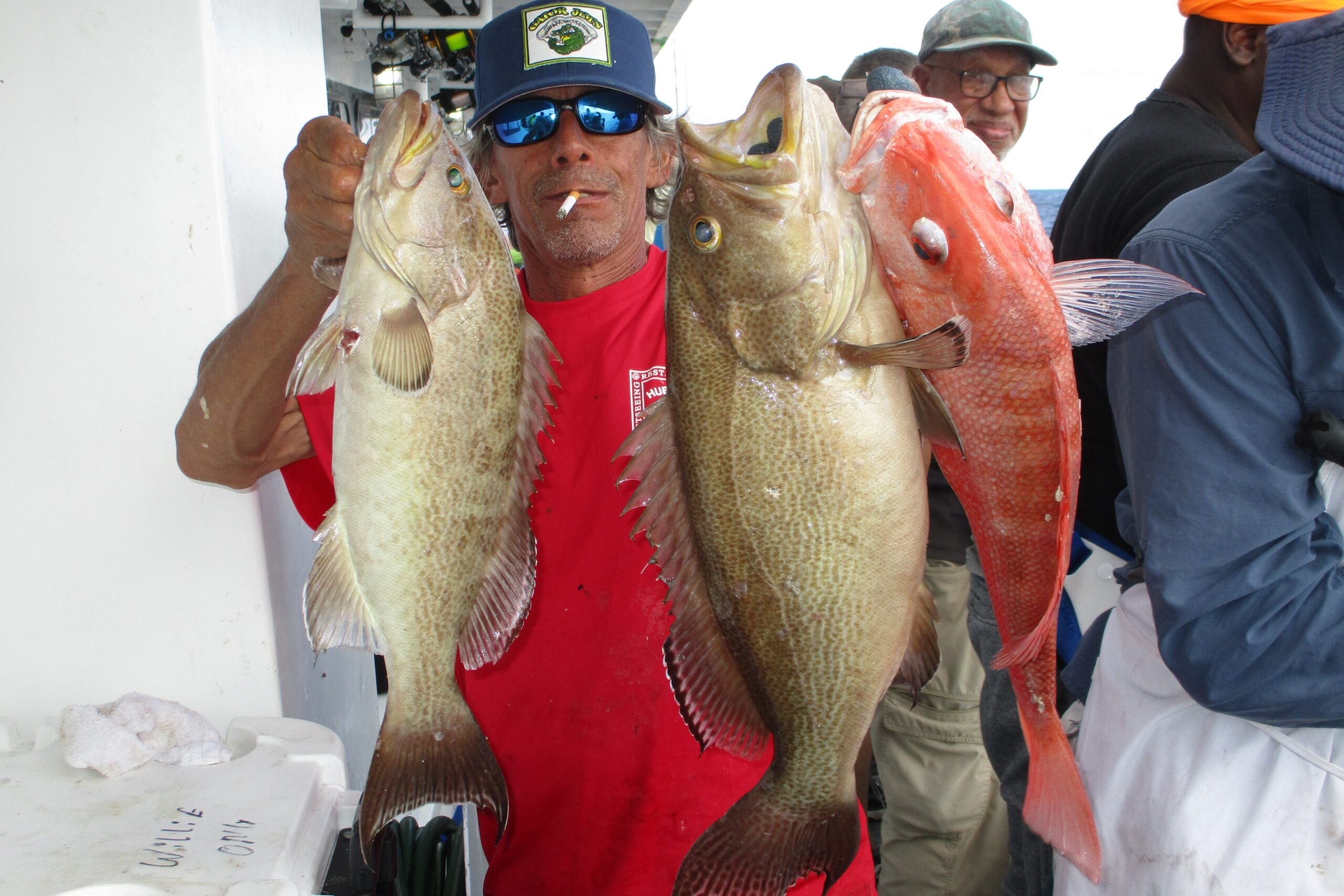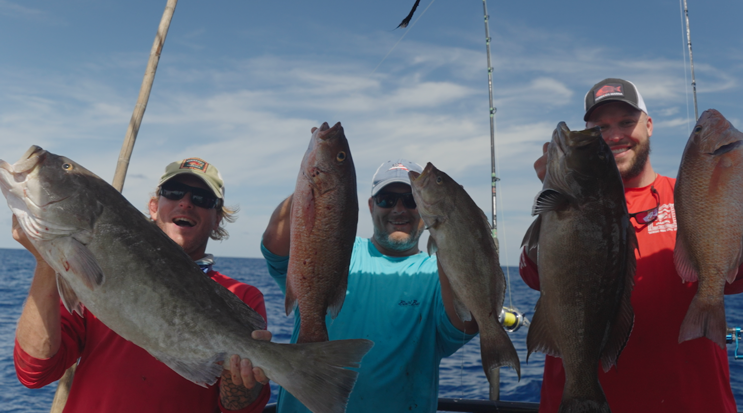 The gag grouper bite was a little soft for us on this last 39 hour trip overall, but those who knew how to get the finicky fish to feed were catching them well. One angler caught 30% of the gags caught on the boat using a little lighter 80lb leader. Instead of hooking bait under the chin, he was hooking them just above their anal fin and dropping them down more slowly and once hitting bottom stretching out that leader and holding bottom actively while making sure that lead wasn’t moving. That enabled him to hook up and land more gag grouper than anyone else. Often when the bite is slower for the grouper, that is a great approach. I always tend to hook them under the chin and out the top of the head, but when the bite slows tail hooking them works well but when you do this its more likely to get tangled as the bait goes down to the bottom spinning so you have to cast it out a bit and then slow the descent of the bait more with more pressure from your thumb on the spool.