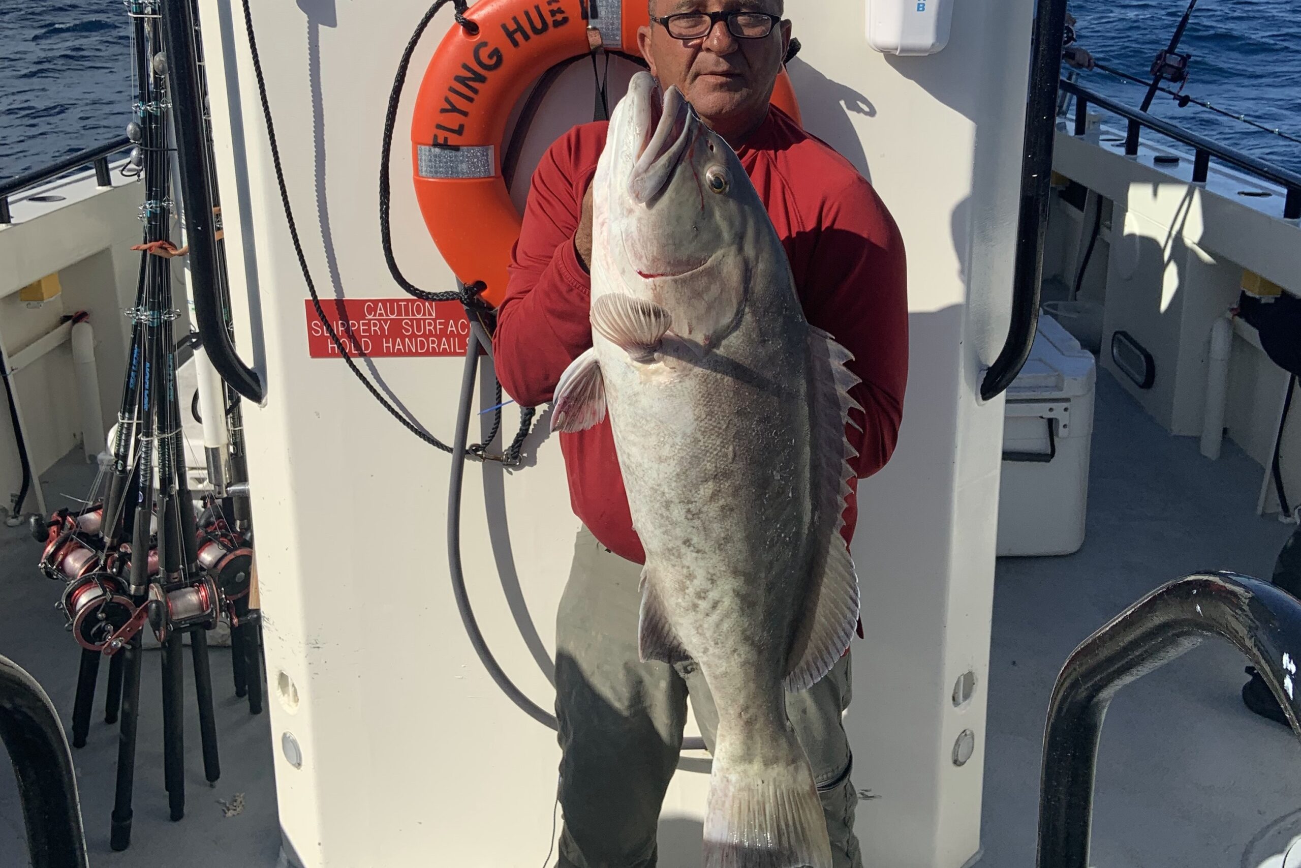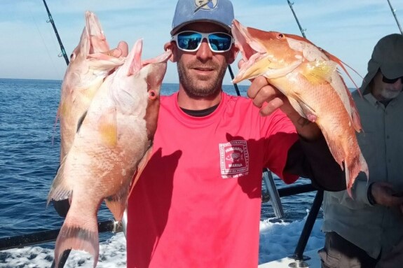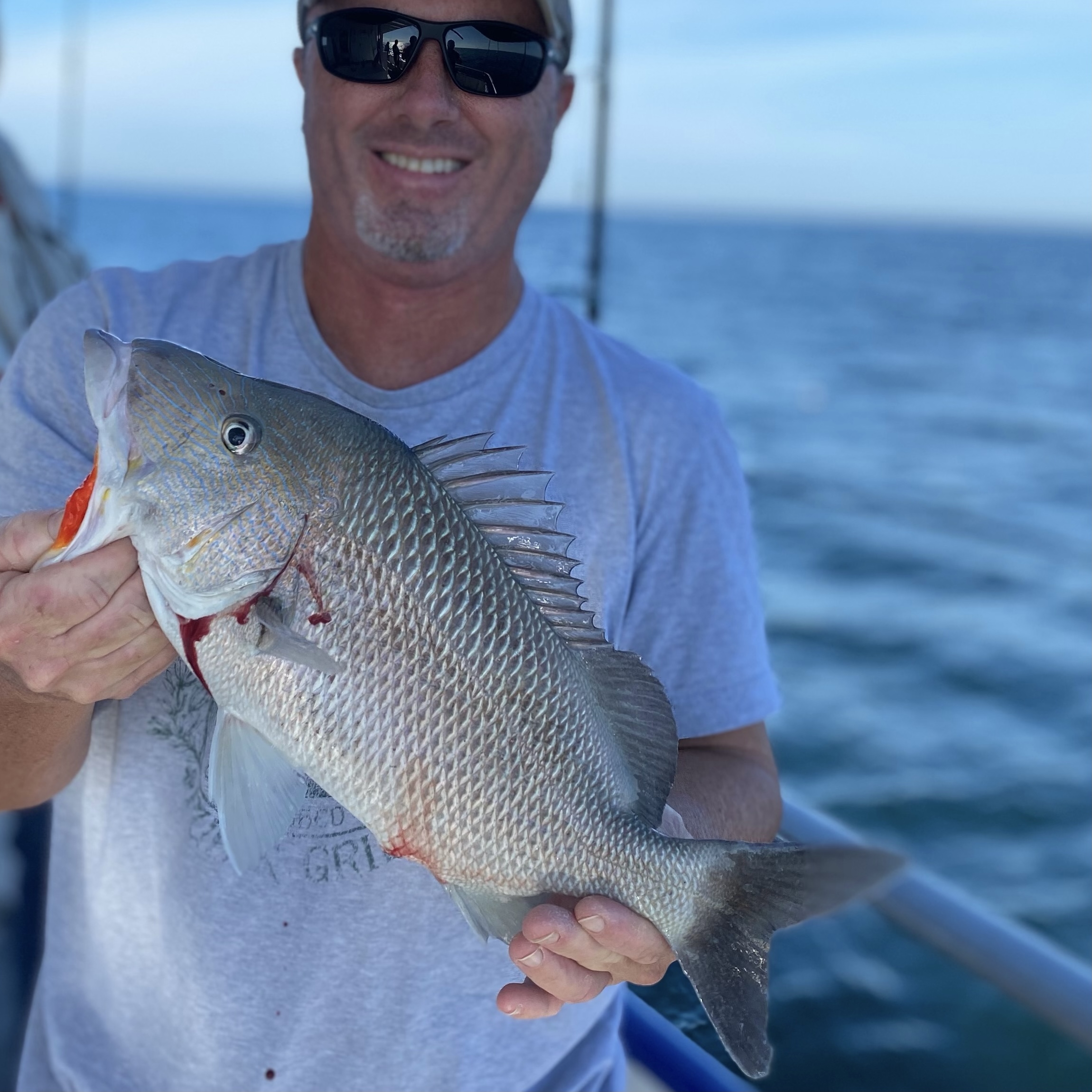 The gag grouper bite was a little tougher for us on this mid-week trip, but still caught more than two dozen nice gags out there in the deeper offshore waters. We are hoping this weekend will bring a stronger gag bite especially ahead of this looming front. Typically the gag grouper bite goes really well as they sense the approaching low. We are seeing them acting a little leader shy offshore, especially the more schoolie sized gags, in the 24-32 inch range. The bigger gags right now are around 18-25lbs and are around the 100-160ft of water compared to the summer when we are fishing up to 250ft for red snapper. This time of year, the more average sized to medium gags are on the move to fatten up before their long springtime pilgrimage to their spawning aggregations in deep water. Due to this, we are seeing a lot of guys and gals starting with 80lb leaders and if the bite is picky dropping to 60lb and getting more chances at hookups. However, as you lighten your leader the chance for breaking off a nice gag exponentially increases. Live pinfish, pigfish, and squirrelfish have been great live bait options. However, we are seeing plenty of these guys on dead baits too.