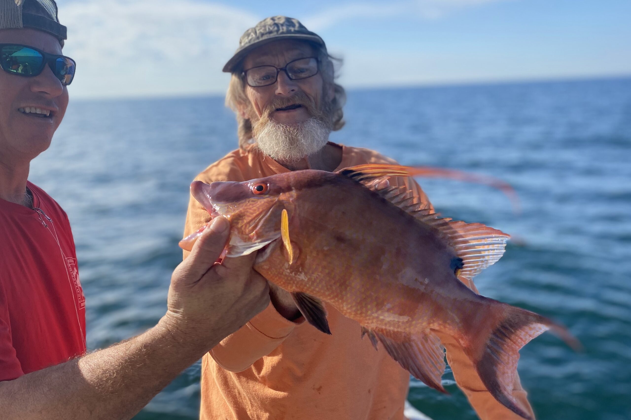 Hogfish bite is going well for us near-shore around 40-70ft of water where we are seeing lots of these good eating fish. However, they are really tricky to dial in. Even if you have the best technique, tackle, and correct bait; sometimes the person next to you will catch the keeper while you get bycatch or little ones. Lighter tackle and minimal weight helps to target the hogfish with around 30lb floro leader and 3-4ot hooks. We use three methods that really help us to target the hogfish; either the knocker rig, jig head method or the ball jig approach. With the knocker rig, some will even add 4-5 of the smaller red beads between the egg sinker and hook to give the rig some ‘noise’ and we presume this added clicking of the beads is what attracts the curious hogfish to bite these rigs. Some days this really works, other days it may not help. However, it is worth a shot to try a bit of everything right?