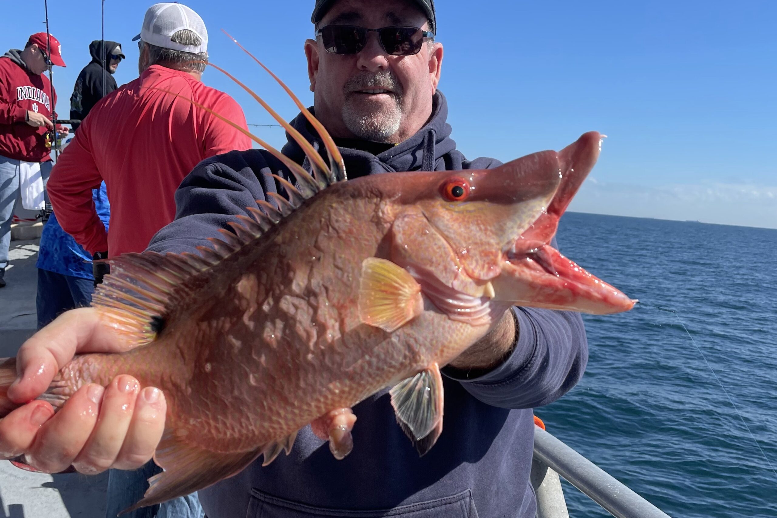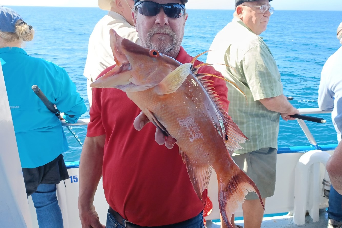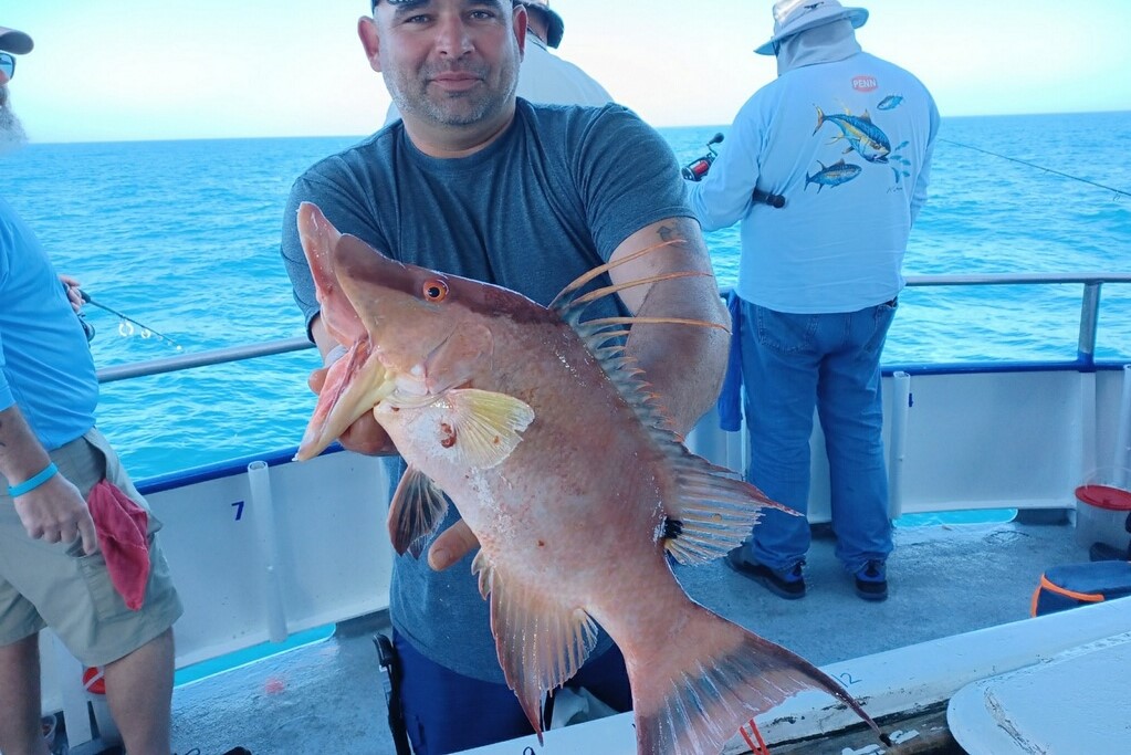 The deep-water closure continues along with some less than optimal weather conditions for offshore fishing. Luckily, we were able to sneak out there a few times and did well on plentiful fish. The mangrove snapper were a little spotty for us but plentiful vermillions, porgies and lane snapper made up for the lack of mangrove snapper on our mid-week 39 hour. We were expecting a solid 6ft sea but ended up with only around 4ft which isn’t bad aboard our large and stable Florida fisherman catamaran. The red grouper were tough but we were able to pick a few during the day. The nighttime bite right on that full moon was great, but the daytime action was slow due to the high pressure and full moon coupled together.