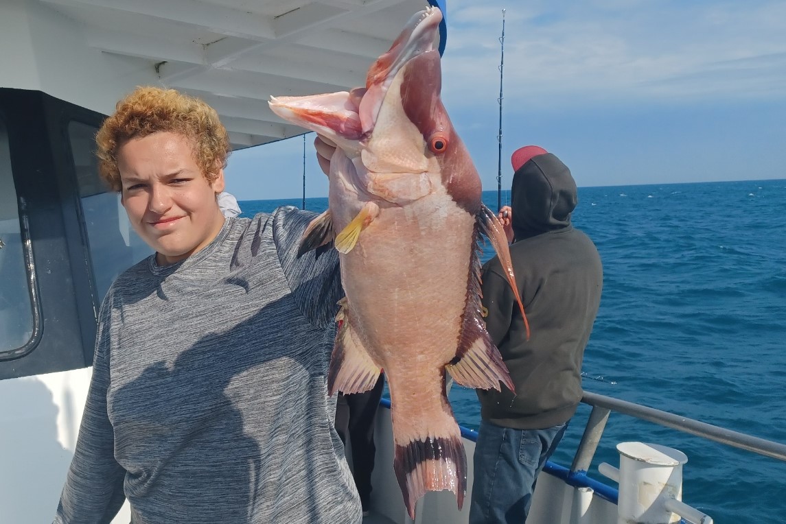 Hogfish action is steady near shore around that 40-80ft range. They slowed a bit for us, but we are hoping that had more to do with the weather than anything else. We are unfortunately experiencing some tougher conditions that make it more difficult to get out there to the hogfish, and then when we are able that water is murkier and the fishing has been a little tougher, but we are getting little weather windows that allow us a good shot at them. Like this past week we saw a great bite Tuesday and then again Thursday and both of those days were when we finally had a little reprieve from the more turbulent weather.