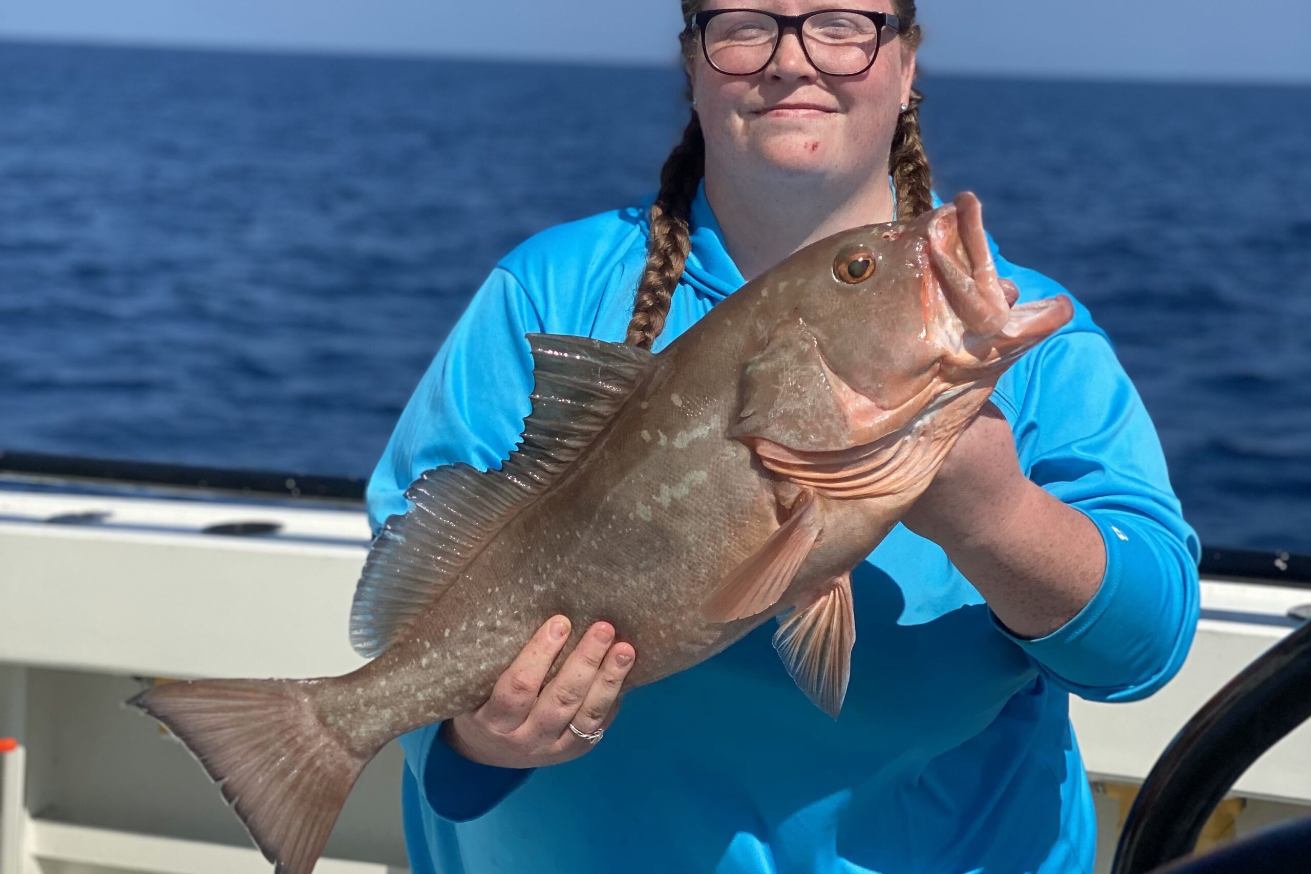 Mangrove snapper action is going well for us in the deeper offshore waters. We are seeing pretty good numbers around that open area for grouper in 100-120ft of water. However, the bigger fish and higher concentrations are around 140-180ft of water. Due to this, often on our longer-range trips we are fishing beyond the closure line for grouper at night. Then during the day, when the mangroves don’t bite quite as well, and the red grouper are biting better we will move shallower and target more of the red grouper.